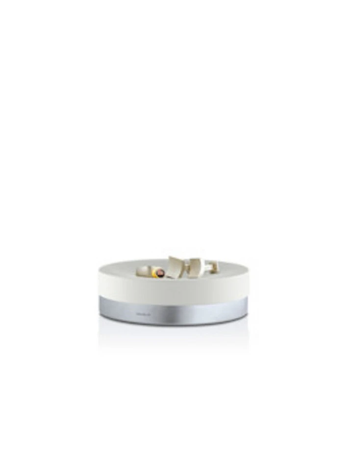 De opbergschaal ARA van wit polysteen en mat edelstaal brengt elegantie in de badkamer. De schaal heeft een geultje, waarin zeep, maar ook accessoires en sieraden passen. Dankzij zijn hoogwaardige afwerking is de opbergschaal probleemloos te reinigen. Ook verkrijgbaar in taupe en antraciet.