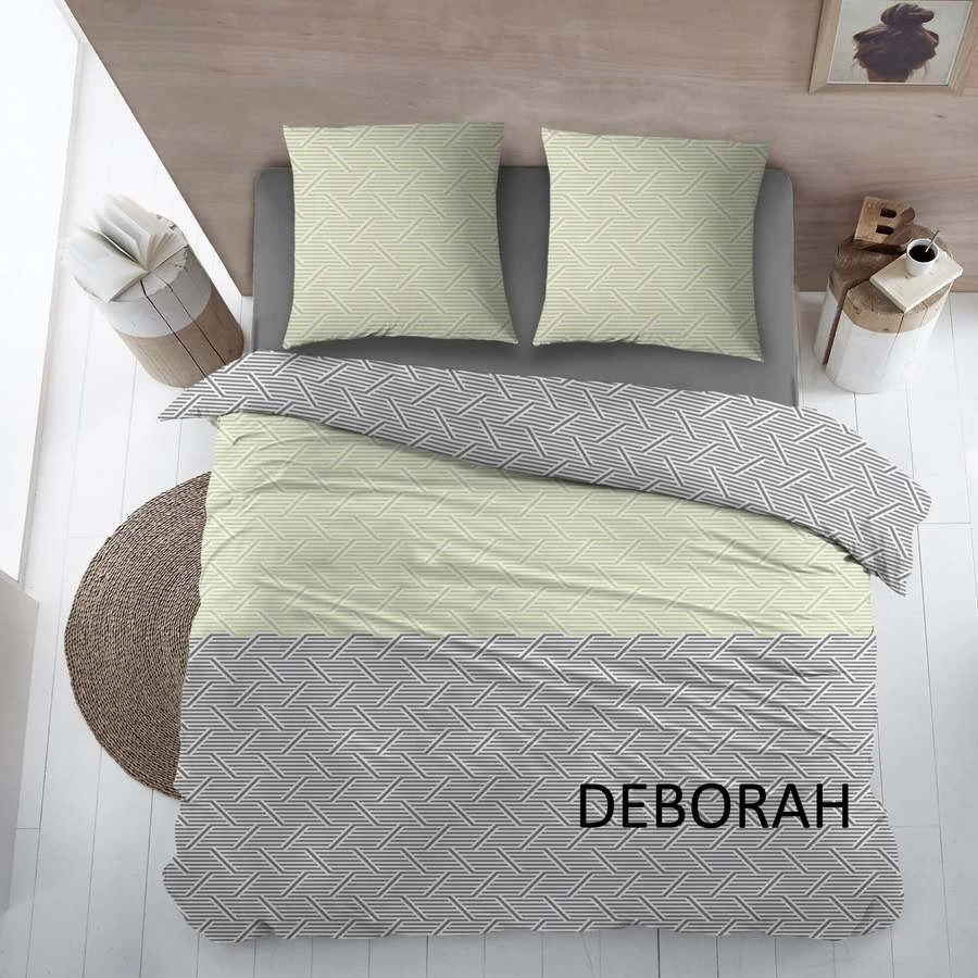 Carlina Dekbedovertrek Deborah Groen|Grijs 140x220 Cm Flanel