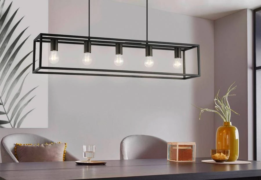 De hanglamp Blackcrown van EGLO past in ieder modern interieur dankzij de strakke zwarte lijnen van de open behuizing van de lamp. Kies voor een lichtbron met filament voor extra sfeer. Een hanglamp is een blikvanger in ieder huis en komt vooral tot zijn recht boven de eettafel. Omdat Blackcrown geschikt is voor dimbare lichtbronnen, is het aan te raden een dimmer aan te sluiten op de lamp. Zo kan je zelf in combinatie met de juiste lichtbron kiezen voor een lichtsterkte die aan te passen is op elk moment. De lamp heeft vijf lichtbronnen met een E27 fitting nodig.