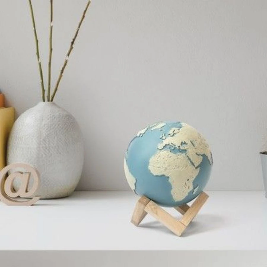 Op je bureau of op een donker plekje in je woonkamer komt deze Wereldbol lamp van Fisura het beste tot zijn recht. De lamp – die eruit ziet als de aarde – zorgt ervoor dat een saaie ruimte opeens interessant wordt. De wereldbol ligt op een houten standaard en is leverbaar in twee varianten: blauw of wit. Is er geen stopcontact in de buurt? Geen probleem! De lamp wordt opgeladen via USB, waarna hij zes tot tien uur kan branden.