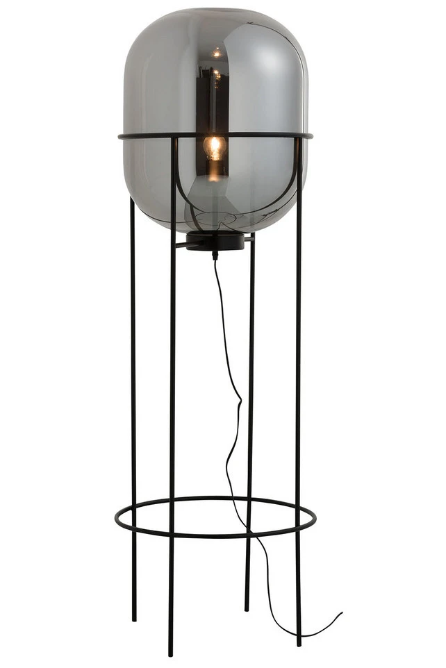 J-Line Lamp Sasha Op Voet Metaal/Glas 47x47x152cm - Zilver/Zwart -meubels winkel product 710860