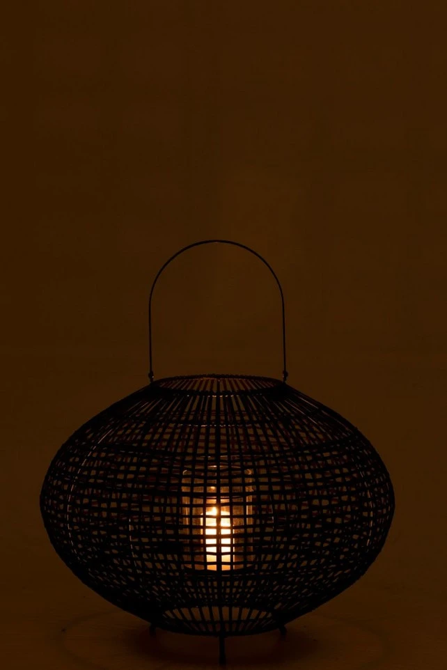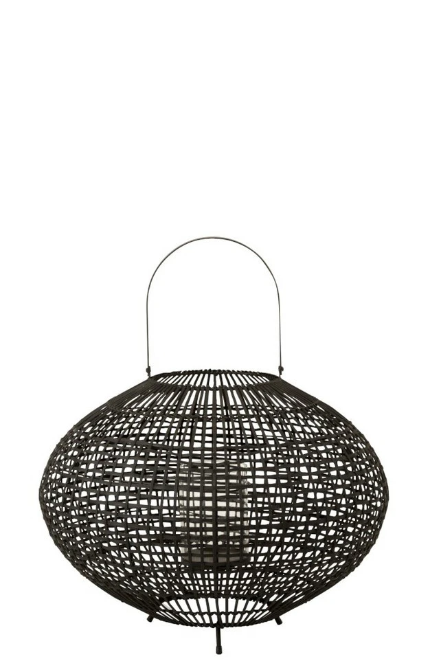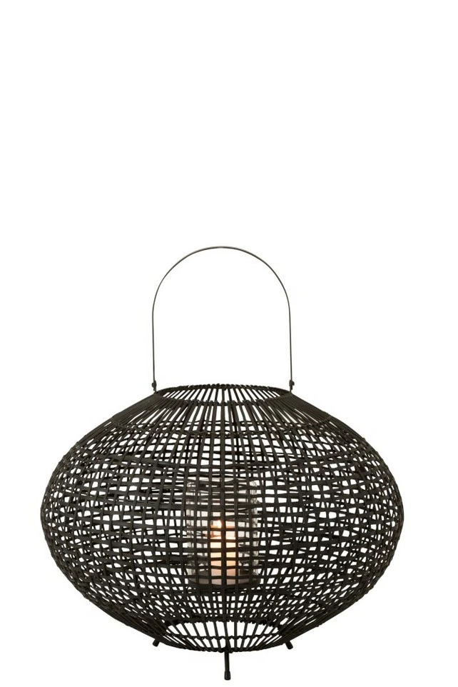 J-Line Lantaarn Rattan/Metaal op Voet 61x61x48.5 cm – Zwart