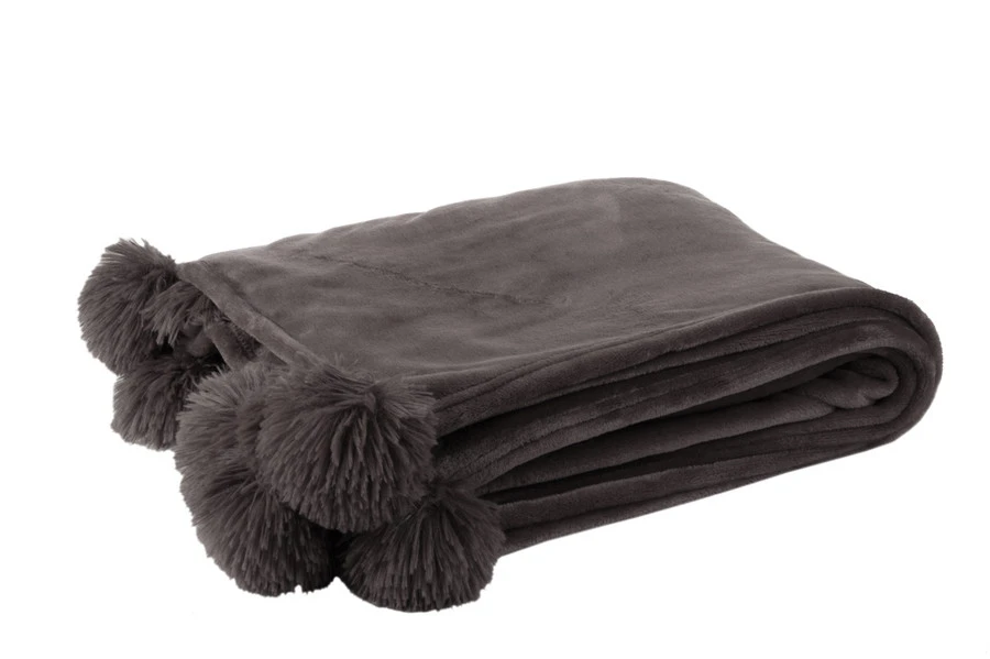 J-Line Plaid Pompom Donker Taupe 130×170 Cm Polyester