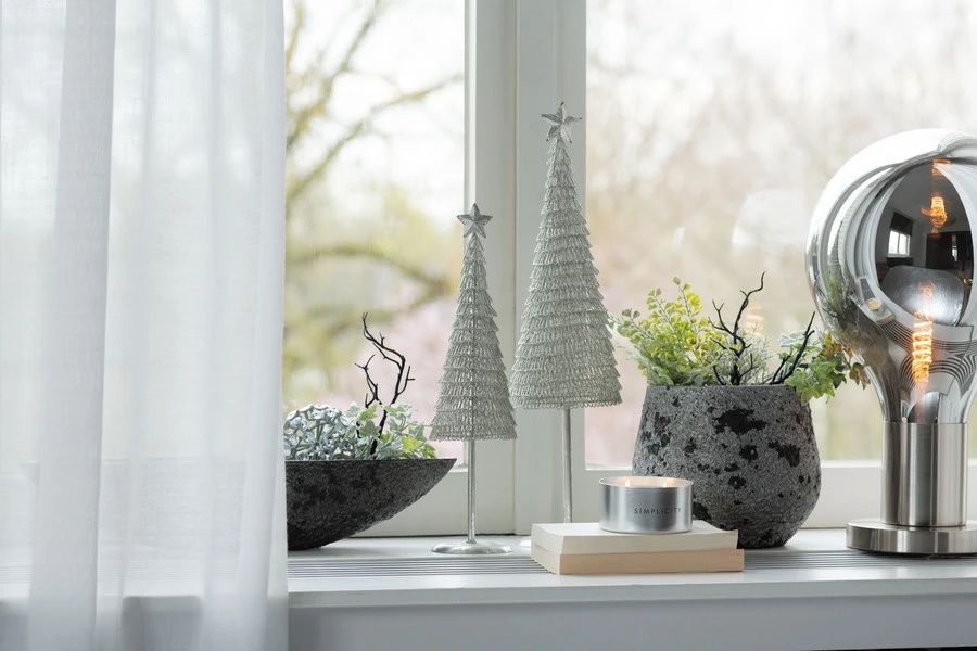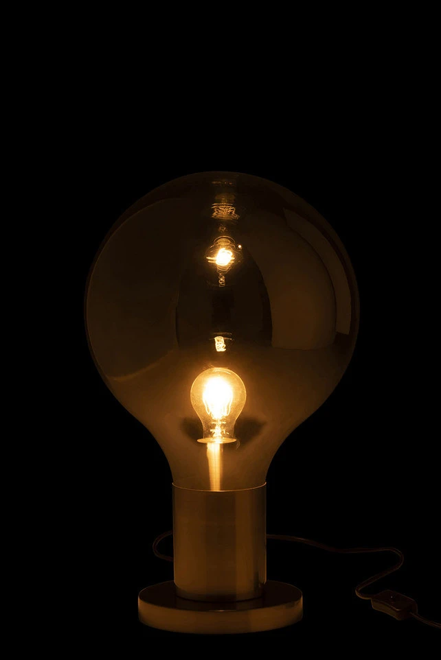 J-Line Tafellamp Bal Glas/IJzer 30x30x50cm – Grijs/Zilver
