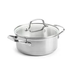 De Dagelijkse Kost reeks is uitgebreid met een aantal onmisbare producten in kwalitatief roestvrij staal, zo ook deze PFAS-vrije Dagelijkse Kost Kookpan – 18CM/2.0L. Alle items hebben een tijdloos design en een dikke gesmede bodem die ervoor zorgt dat je kookgerei extra stabiel op de kookplaat staat.
