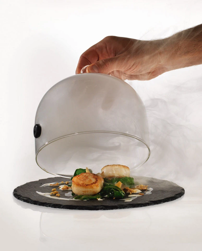 De rookstolp in borosilicaatglas heeft een zelfsluitend ventiel in silicone waardoor je gerechten of dranken kan beroken zonder de stolp op te lichten en zonder geurhinder. Ideaal accessoire voor gebruik in combinatie met de Food & Cocktail Smoker van Lacor.