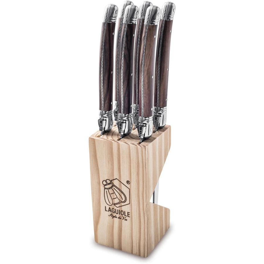 Laguiole Steakmes Set 6 Stuks DarkWood In Houten Blok By Style De Vie