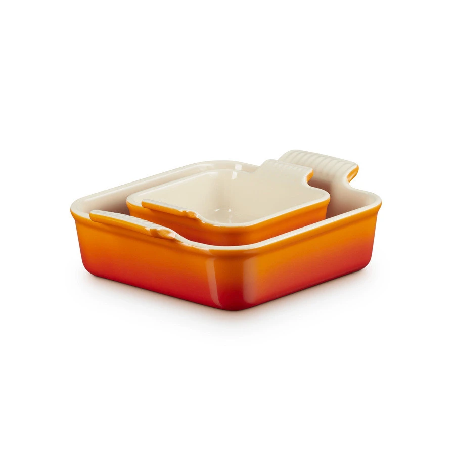 Le Creuset Ovenschaal Vierkant Set Van 2 Oranjerood - 13 & 20 Cm - Aardewerk -meubels winkel product 1018777