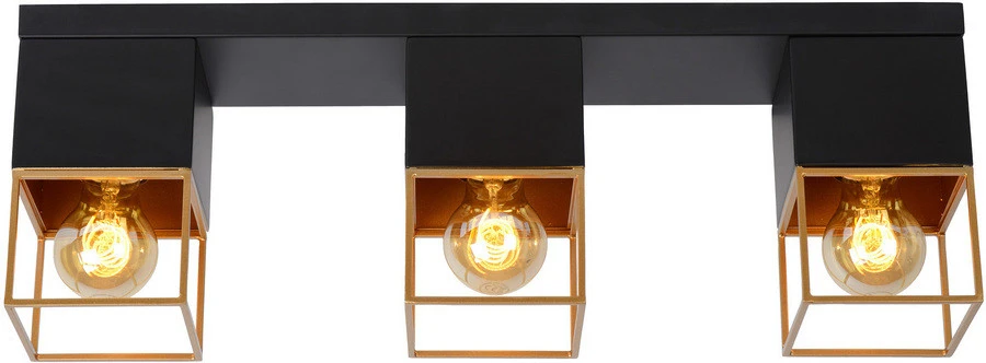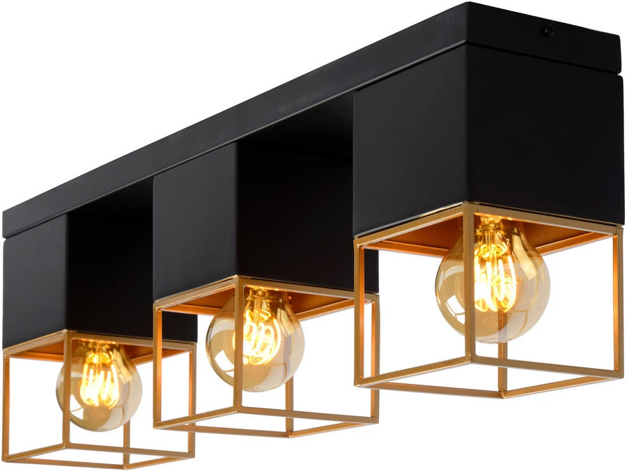 Lucide Rixt Plafondlamp Zwart/Goud 3x E27 socket