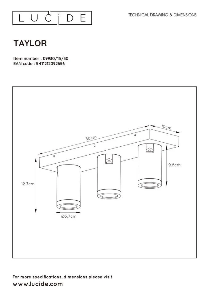 - Verbruik: 3x5W / 230V / A+ (incl.) – Dimbaar