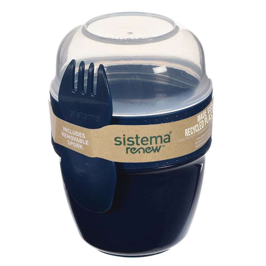 Sistema Snackdoos Snack Capsule 515ml Met Lepel/Vork – Donkerblauw / Groen