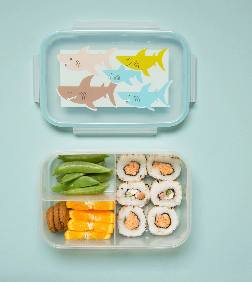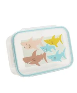De Smiley Shark Good Lunch Bento Box heeft een lachende haai in een haaien kleurenpalet.