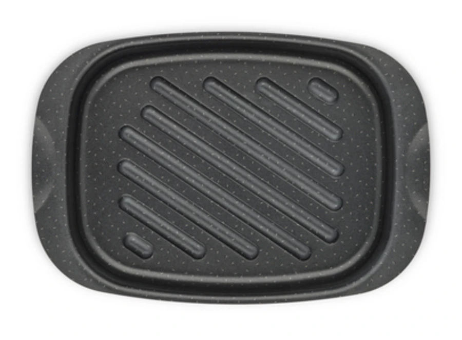 De ribbels in deze braadschotel zorgen ervoor dat het gerecht tijdens het bakken niet in contact komt met het bakvet. Heel gezond dus!