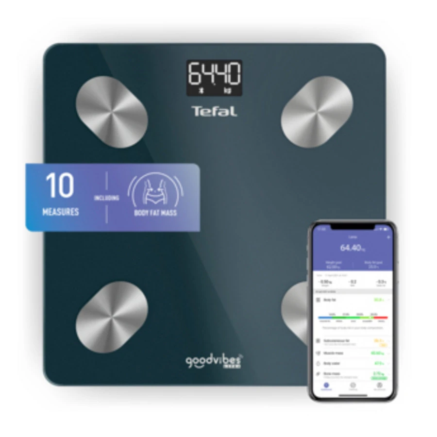 Tefal Personenweegschaal Goodvibes Life+ 30 cm – tot 180 kg – Bluetooth – Zwart